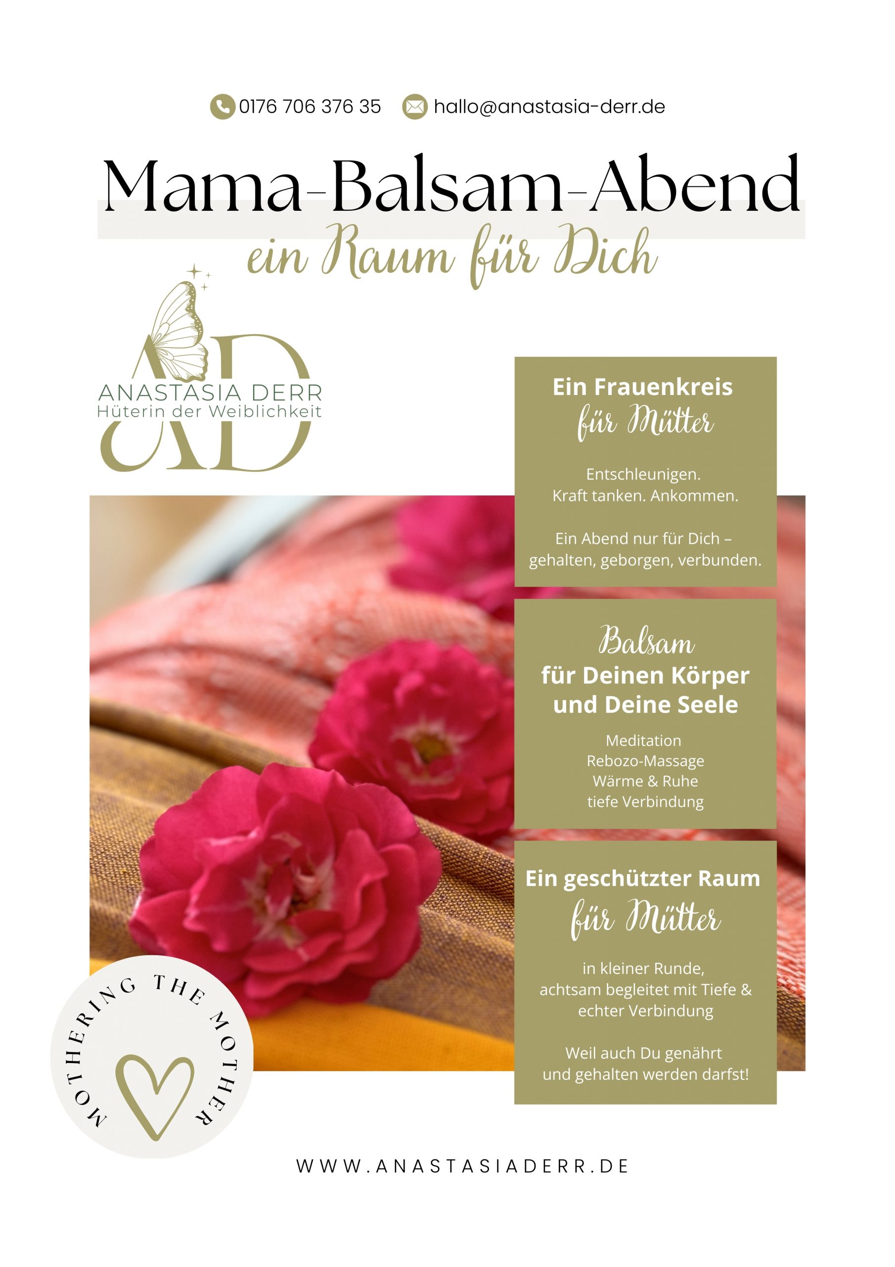 Der Mama-Balsam-Geschenkgutschein ist eine liebevolle Einladung an sie: zum Auftanken, zum Festgehaltenwerden, zum Wiederankommen in ihrem Körper, ihrem Herzen und ihrem neuen Sein als Mama.